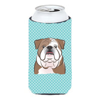 Checkerboard Blue English Bulldog Tall Boy Beverage Insulator Hugger Bb1157Tbc