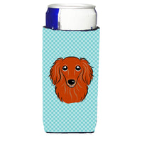 Checkerboard Blue Longhair Red Dachshund Ultra Beverage Insulators For Slim Cans