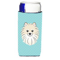 Checkerboard Blue Pomeranian Ultra Beverage Insulators For Slim Cans Bb1145Muk