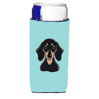 Checkerboard Blue Smooth Black And Tan Dachshund Ultra Hugger For Slim Cans