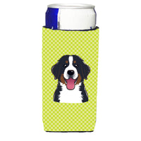 Checkerboard Lime Green Bernese Mountain Dog Ultra Beverage Insulators Slim Cans