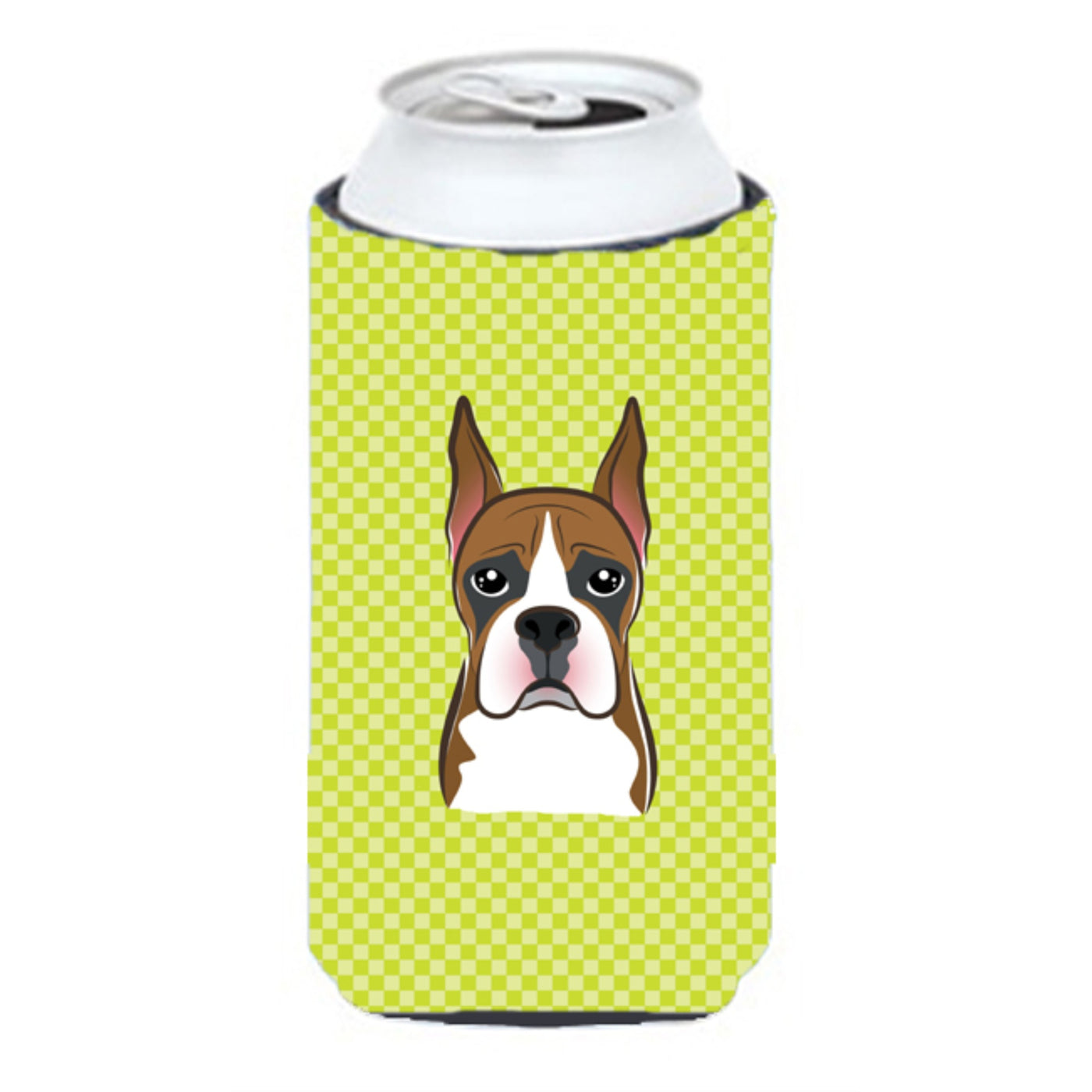 Checkerboard Lime Green Boxer Tall Boy Beverage Insulator Hugger Bb1285Tbc