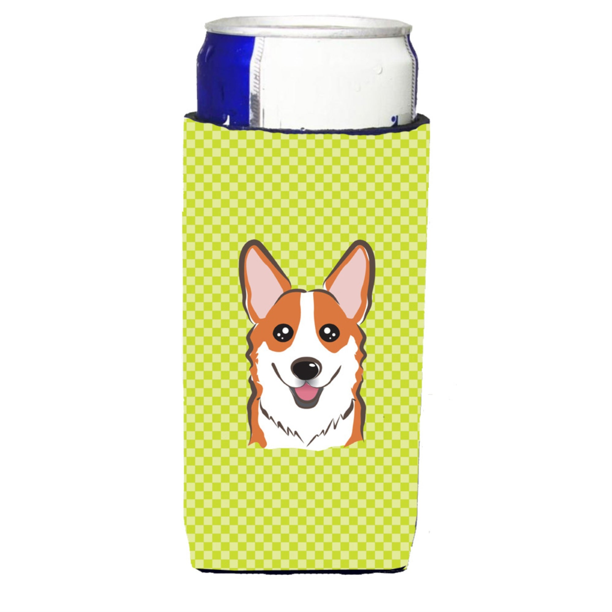 Checkerboard Lime Green Corgi Ultra Beverage Insulators For Slim Cans Bb1316Muk