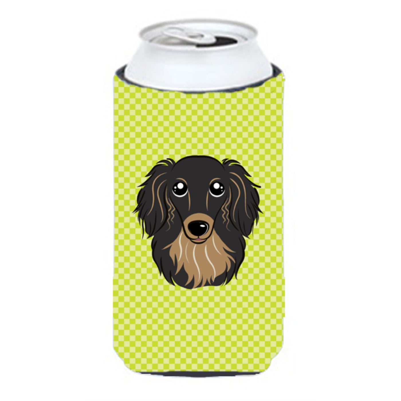 Checkerboard Lime Green Longhair Black And Tan Dachshund Tall Boy Beverage Insulator Hugger