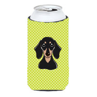 Checkerboard Lime Green Smooth Black And Tan Dachshund Tall Boy Beverage Insulator Hugger