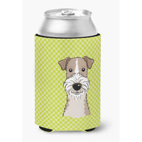 Checkerboard Lime Green Wire Haired Fox Terrier Can Or Bottle Hugger