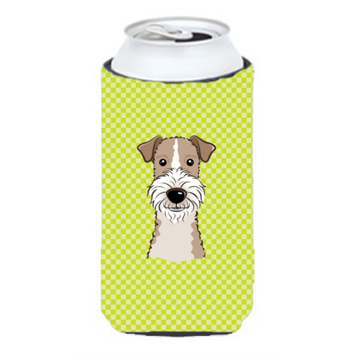 Checkerboard Lime Green Wire Haired Fox Terrier Tall Boy Beverage Insulator Hugger Bb1309Tbc
