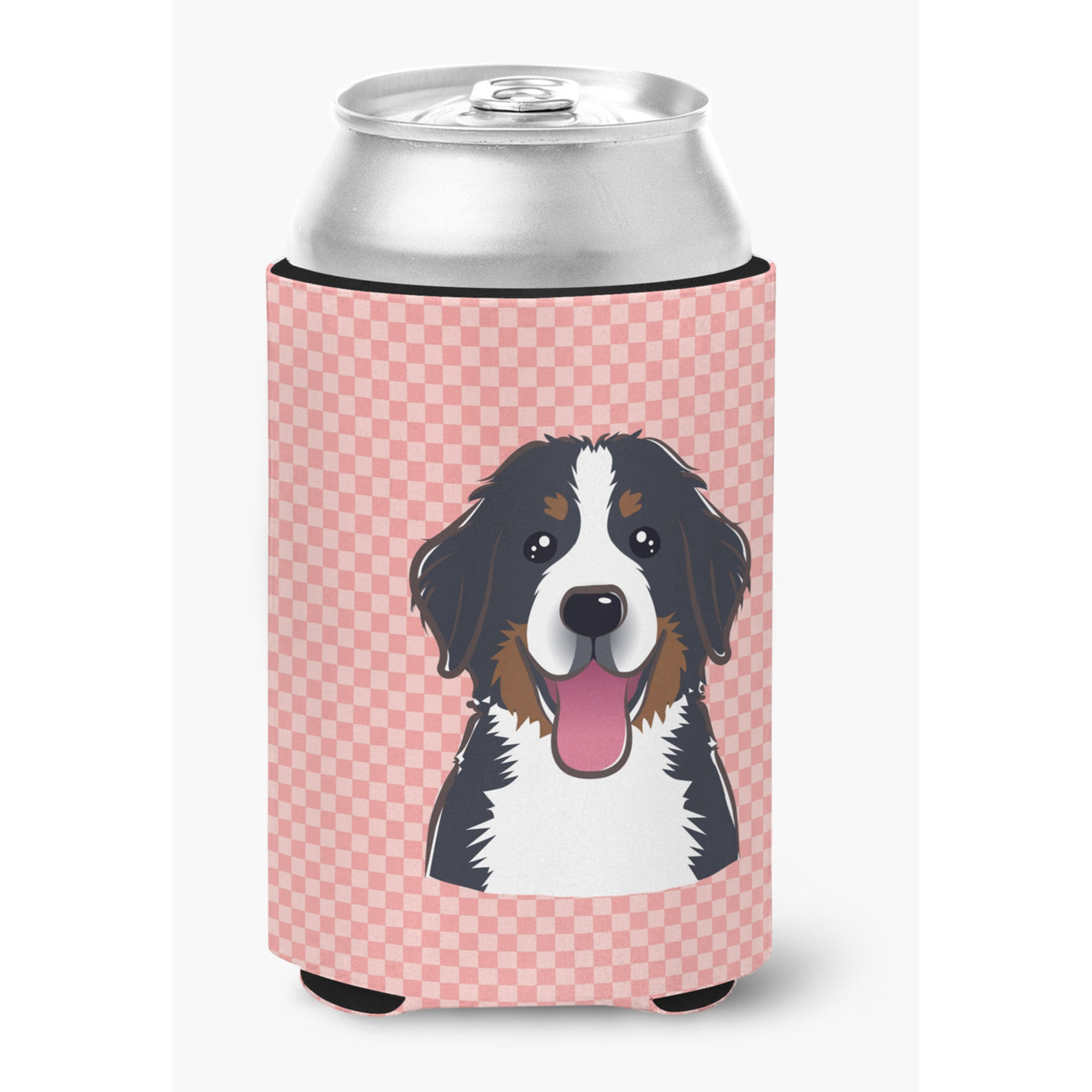 Checkerboard Pink Bernese Mountain Dog Can Or Bottle Hugger