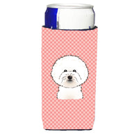 Checkerboard Pink Bichon Frise Ultra Beverage Insulators For Slim Cans Bb1217Muk