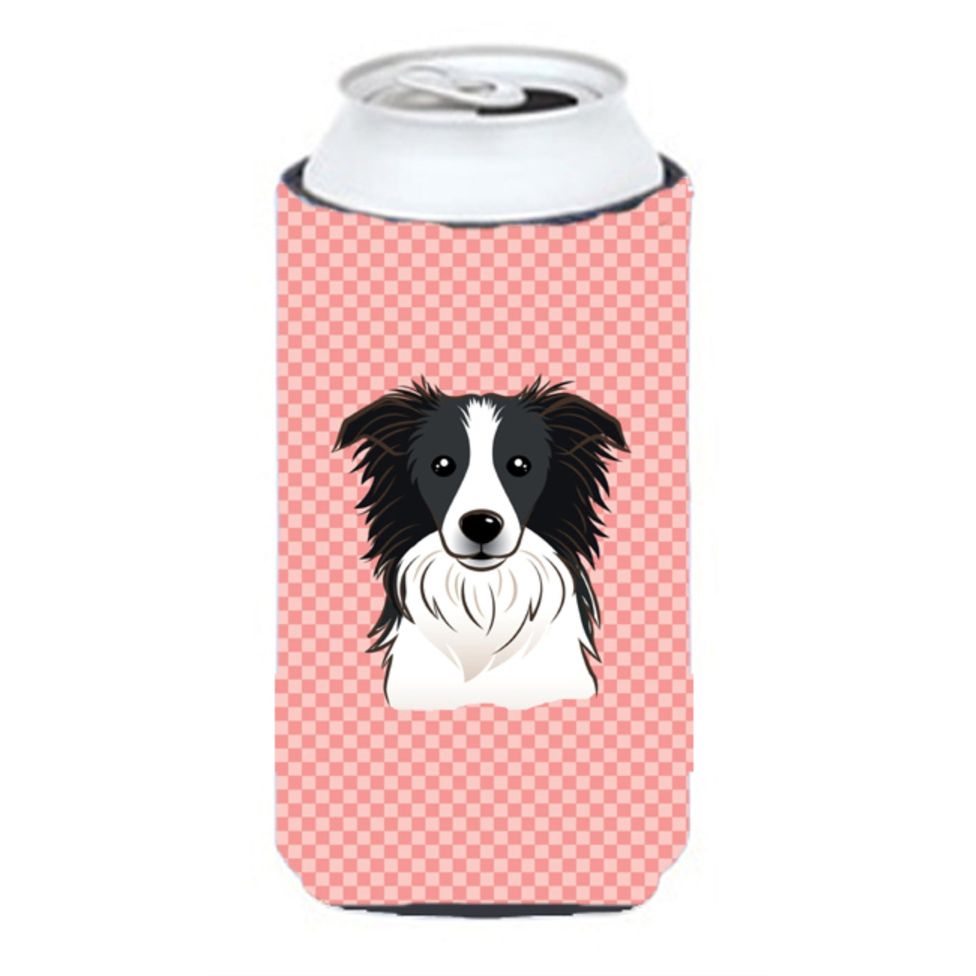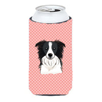 Checkerboard Pink Border Collie Tall Boy Beverage Insulator Hugger Bb1241Tbc