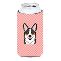 Checkerboard Pink Corgi Tall Boy Beverage Insulator Hugger Bb1255Tbc