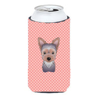 Checkerboard Pink Yorkie Puppy Tall Boy Beverage Insulator Hugger Bb1232Tbc
