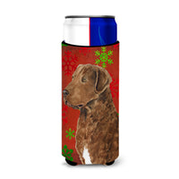 Chesapeake Bay Retriever Red Snowflakes Holiday Christmas Ultra Hugger For Slim Cans