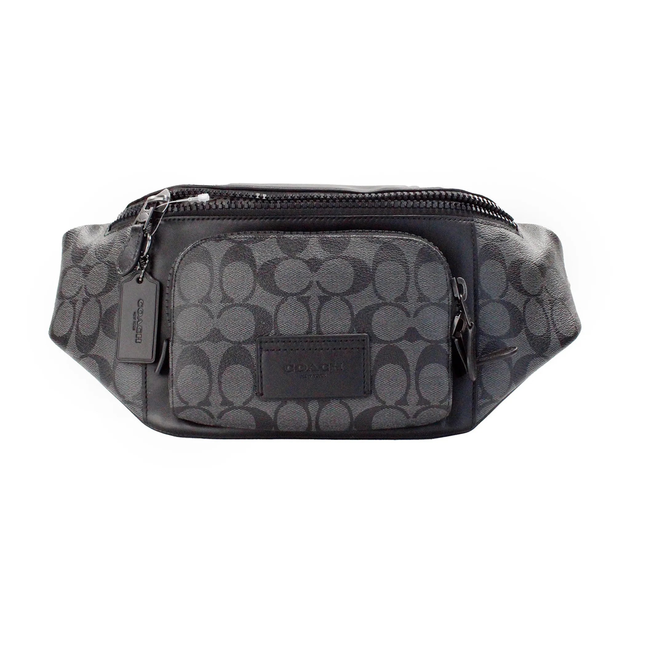 Style: Coach (C3765) Track Charcoal Black Coated Canvas Leather Belt Bag