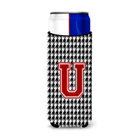 213-615872756223 Letter U Monogram - Houndstooth Black Ultra Hugger For Slim Cans By Carolines Treasures, Inc, Made In Usa.Whatever You Drink We Have You Covereed. Artwork Created By One Of Our Artists And Printed In Full Color On This Bottle Cover. This Full Color Artwork Hugger Fits12 Oz Slim Cans For Michelob Ultra, Starbucks Refreshers, Heineken Light, Bud Lite Lime 12 Oz, Dry Soda, Coors, Resin, Vitaminwater Engergy, And Perrier Cans. Great Collapsible Beverge Insulator. Great To Keep Track Of Your Beverage And Add A Bit Of Flair To A Gathering. These Are In Full Color Artwork And Washable In The Washing Machine. Design Will Not Come Off.