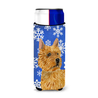 Norwich Terrier Winter Snowflakes Holiday Ultra Hugger For Slim Cans