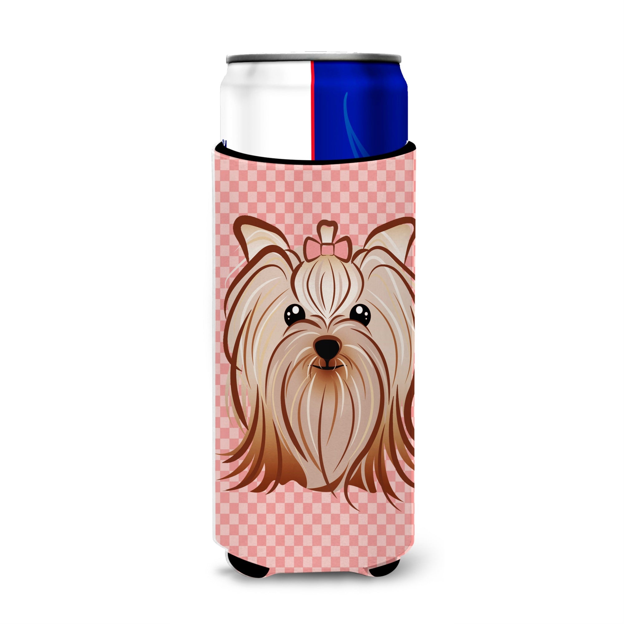 Pink Checkered Yorkie / Yorkshire Terrier Ultra Beverage Insulators For Slim Cans Bb1138Muk