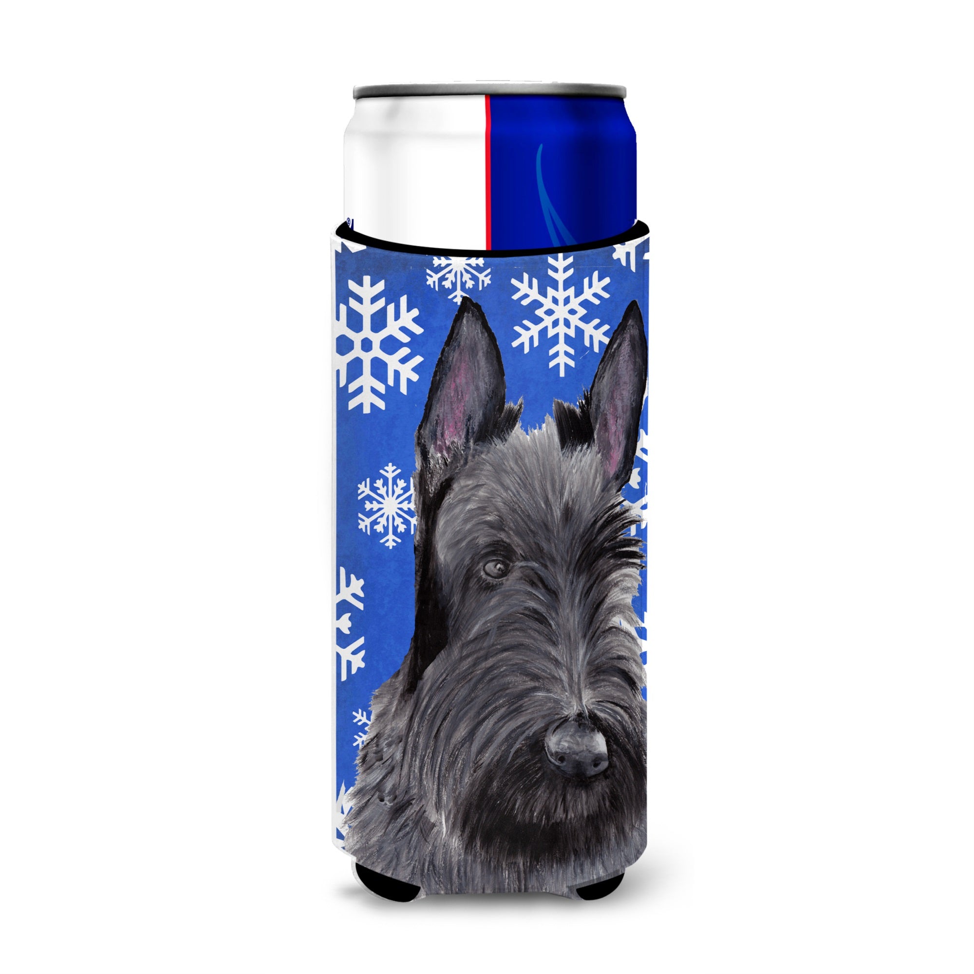213-615872739622 Scottish Terrier Winter Snowflakes Holiday Ultra Hugger For Slim Cans By Carolines Treasures, Inc, Made In Usa.Whatever You Drink We Have You Covereed. Artwork Created By One Of Our Artists And Printed In Full Color On This Bottle Cover. This Full Color Artwork Hugger Fits12 Oz Slim Cans For Michelob Ultra, Starbucks Refreshers, Heineken Light, Bud Lite Lime 12 Oz, Dry Soda, Coors, Resin, Vitaminwater Engergy, And Perrier Cans. Great Collapsible Beverge Insulator. Great To Keep Track Of Your Beverage And Add A Bit Of Flair To A Gathering. These Are In Full Color Artwork And Washable In The Washing Machine. Design Will Not Come Off.