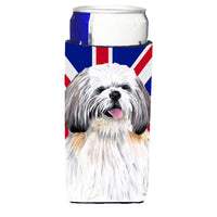Shih Tzu With English Union Jack British Flag Ultra Hugger For Slim Cans