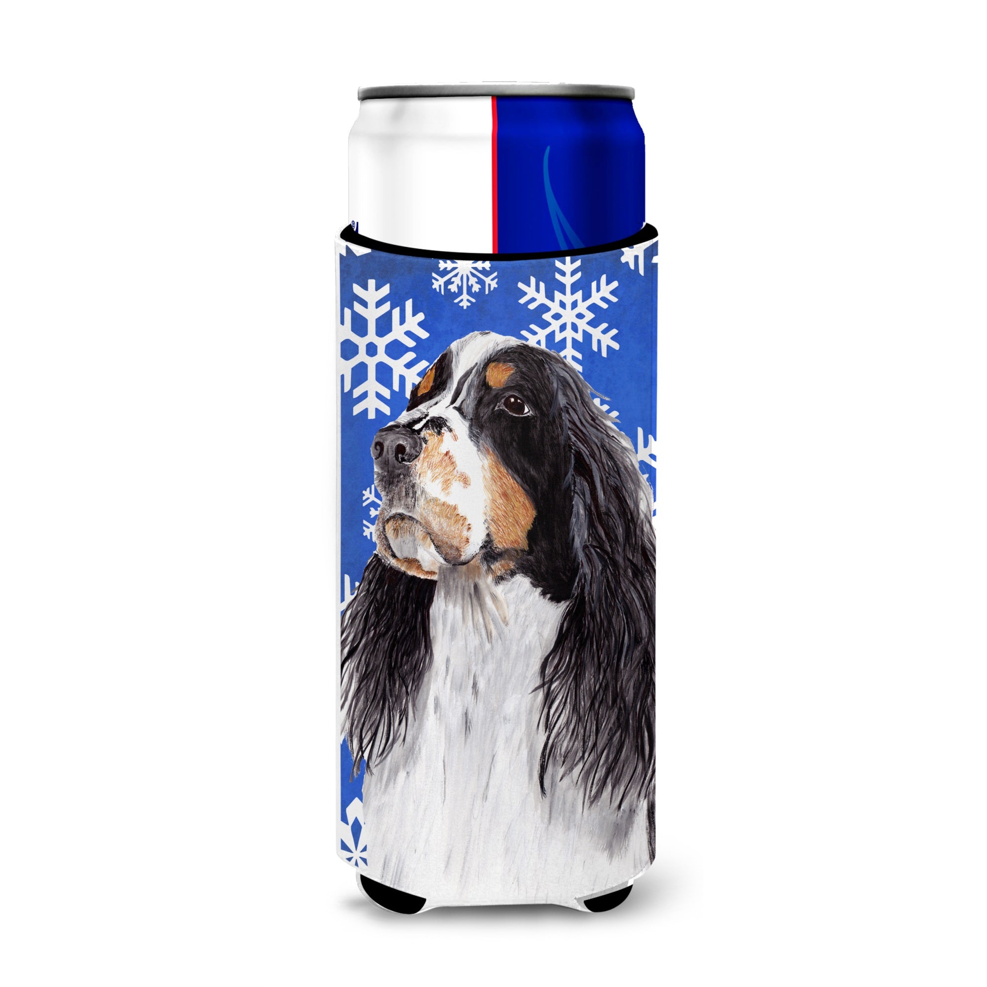 Springer Spaniel Winter Snowflakes Holiday Ultra Hugger For Slim Cans
