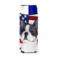 213-615872741663 Usa American Flag With Boston Terrier Ultra Hugger For Slim Cans By Carolines Treasures, Inc, Made In Usa.Whatever You Drink We Have You Covereed. Artwork Created By One Of Our Artists And Printed In Full Color On This Bottle Cover. This Full Color Artwork Hugger Fits12 Oz Slim Cans For Michelob Ultra, Starbucks Refreshers, Heineken Light, Bud Lite Lime 12 Oz, Dry Soda, Coors, Resin, Vitaminwater Engergy, And Perrier Cans. Great Collapsible Beverge Insulator. Great To Keep Track Of Your Beverage And Add A Bit Of Flair To A Gathering. These Are In Full Color Artwork And Washable In The Washing Machine. Design Will Not Come Off.