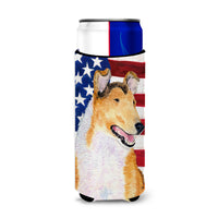 Usa American Flag With Collie Smooth Ultra Hugger For Slim Cans