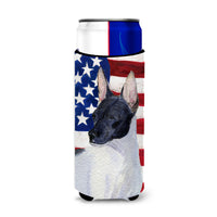 Usa American Flag With Rat Terrier Ultra Hugger For Slim Cans