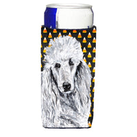 White Standard Poodle Candy Corn Halloween Ultra Hugger For Slim Cans