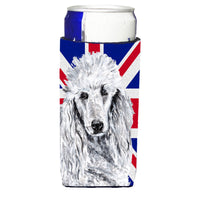 White Standard Poodle With English Union Jack British Flag Ultra Hugger For Slim Cans