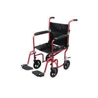 Drive Medical Flyweight Lightweight Transport Wheelchair With Removable Wheels, Red