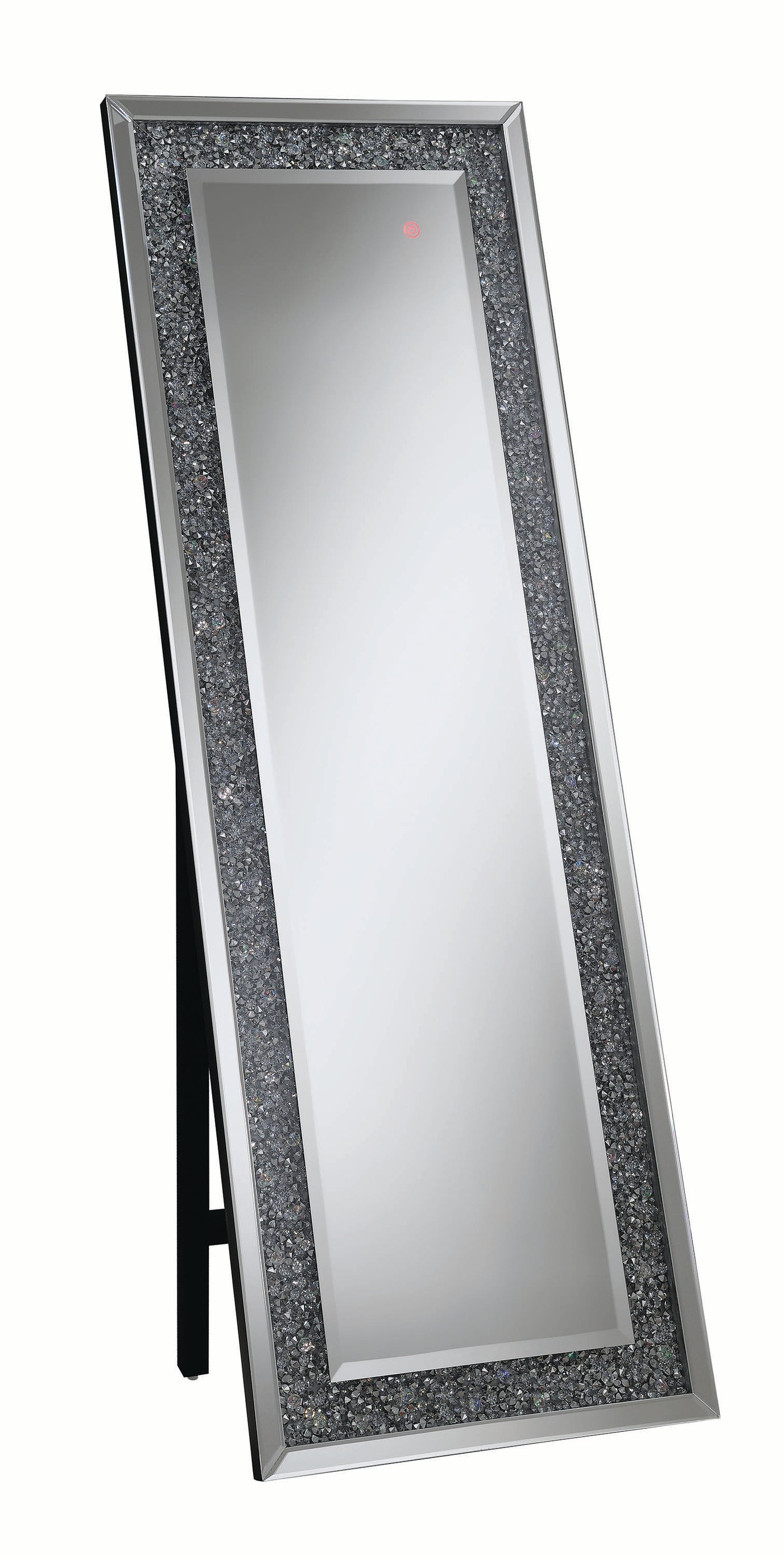 Bring A Cool Vibrancy To Your Home When You Add This Standing Mirror. It Features Mdf And Mirror Construction That Brightens Up A Bedroom Or Makes For A Unique Addition To The Foyer. The Silver Finish Is Embellished With Crystal Accents That Give The Mirror A Splash Of Panache. Yet, The Led Lighting Around Frame Really Enlivens The Home And Sets It Apart From Other Mirrors. You'Ll Always Be Sure You Look Good With This Stunning Standing Mirror.