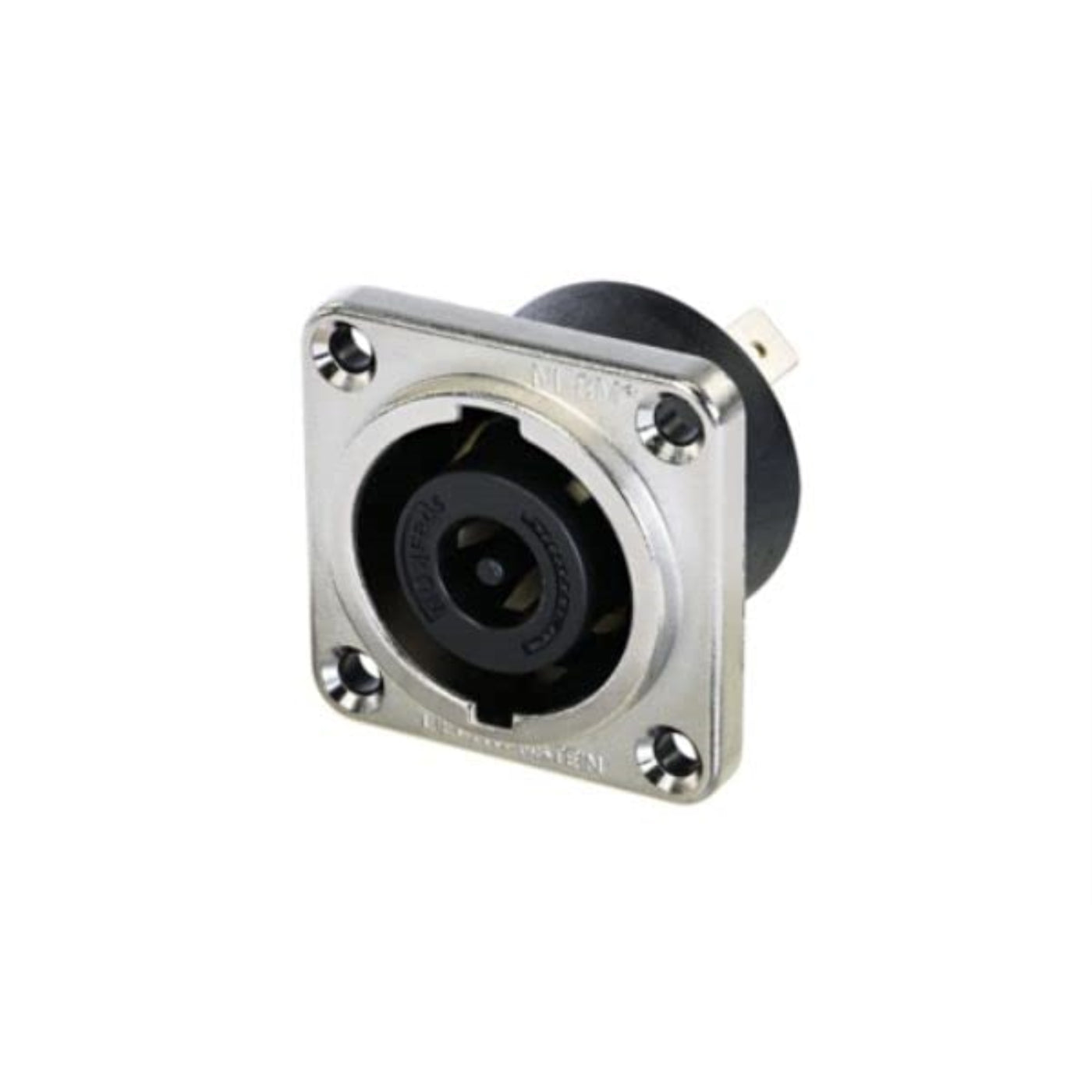 Speakon 8 Pole Male Chassis Connector, Metal Square G-Size Housing, Countersunk Thru Holes, 1/4-In Flat Tabs