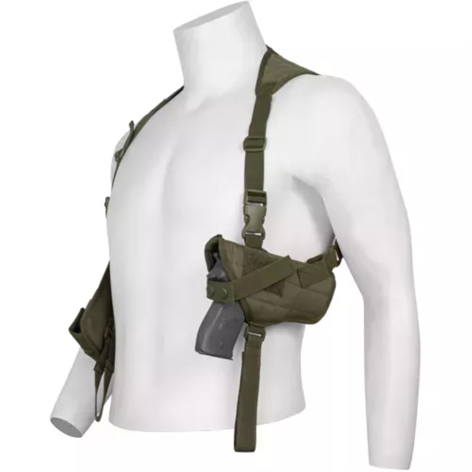 487-99598581701 Tactical Shoulder Holster - Olive Drab Manufactured By Fox Outdoor Products. Tactical Shoulder Holster - Olive Drab Right Or Left Hand Use Adjusts To All Users Dual Clip Pouches Padded Shoulder Harness & Holster Allow For Different Carrying Positions Clips To Fall Into Your Hand When Opened