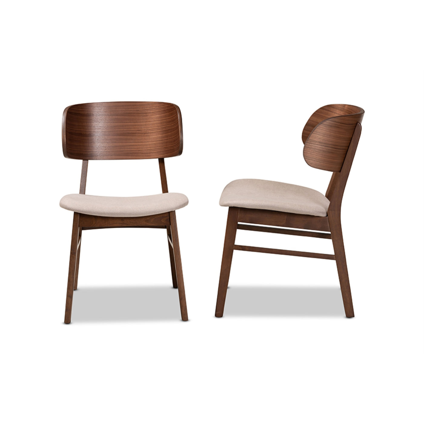 Baxton Studio Alston Mid-Century Modern Beige Fabric Upholstered And Walnut Brown Finished Wood 2-Piece Dining Chair Set
