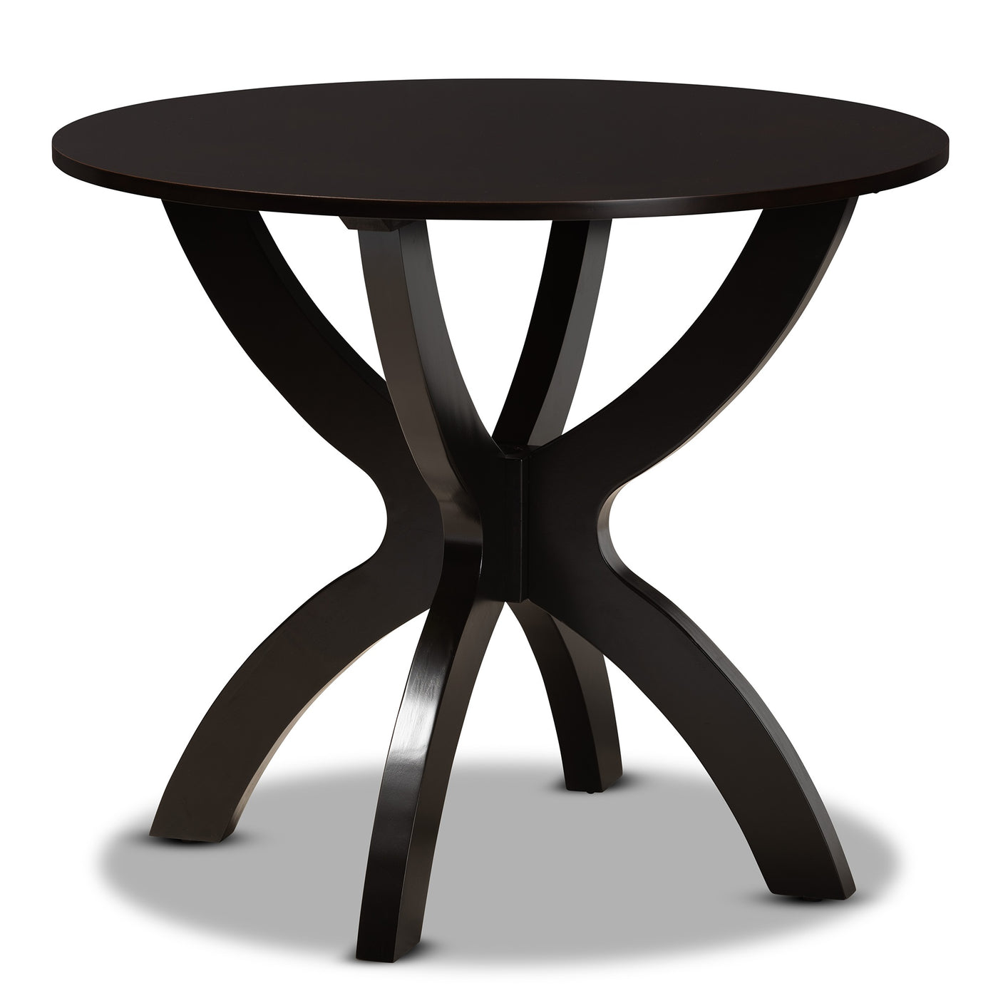 Featuring A Unique, Visually Striking Design, The Karla Dining Set Adds Elegance To Any Dining Space. Made In Malaysia, This Wooden Set Includes Four Chairs And One Table Showcasing A Distinctive Two-Tone Dark Brown And Walnut Brown Finish. Each Chair Features A Refined Geometric Cut Out Design On Its Backrest For Added Visual Appeal, While A Scoop Seat Lends Casual Comfort. Requiring Assembly, The Circular Tabletop Provides Ample Elbow Room For Each Member Of The Table. Emanating Graceful Charm, The Karla Dining Set Is An Exceptional Addition To The Modern Home.