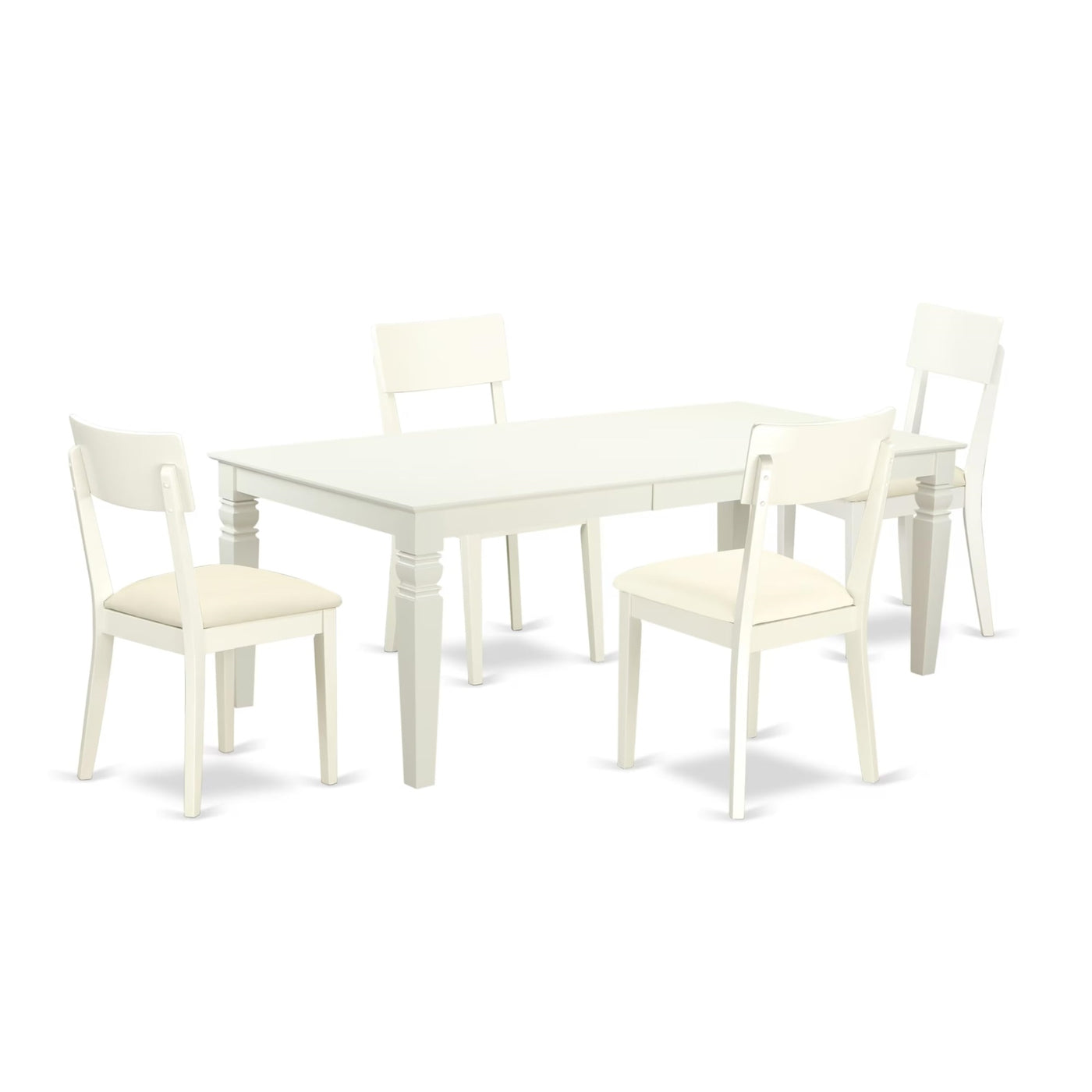 Casafoyer Lgad5-Lwh-Lc 5 Piece Set Includes A Rectangle Dining Room Table With Leaf And 4 Faux Leather Upholstered Kitchen Chairs, 42X84 Inch, Linen White