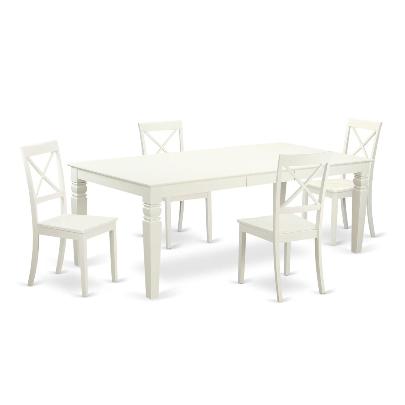 East West Furniture - Lgbo5-Lwh-W - Dining Room Setthis 5-Piece Kitchen Table Set Includes 4 Modern Dining Chairs And A Butterfly Leaf Rectangular Table
