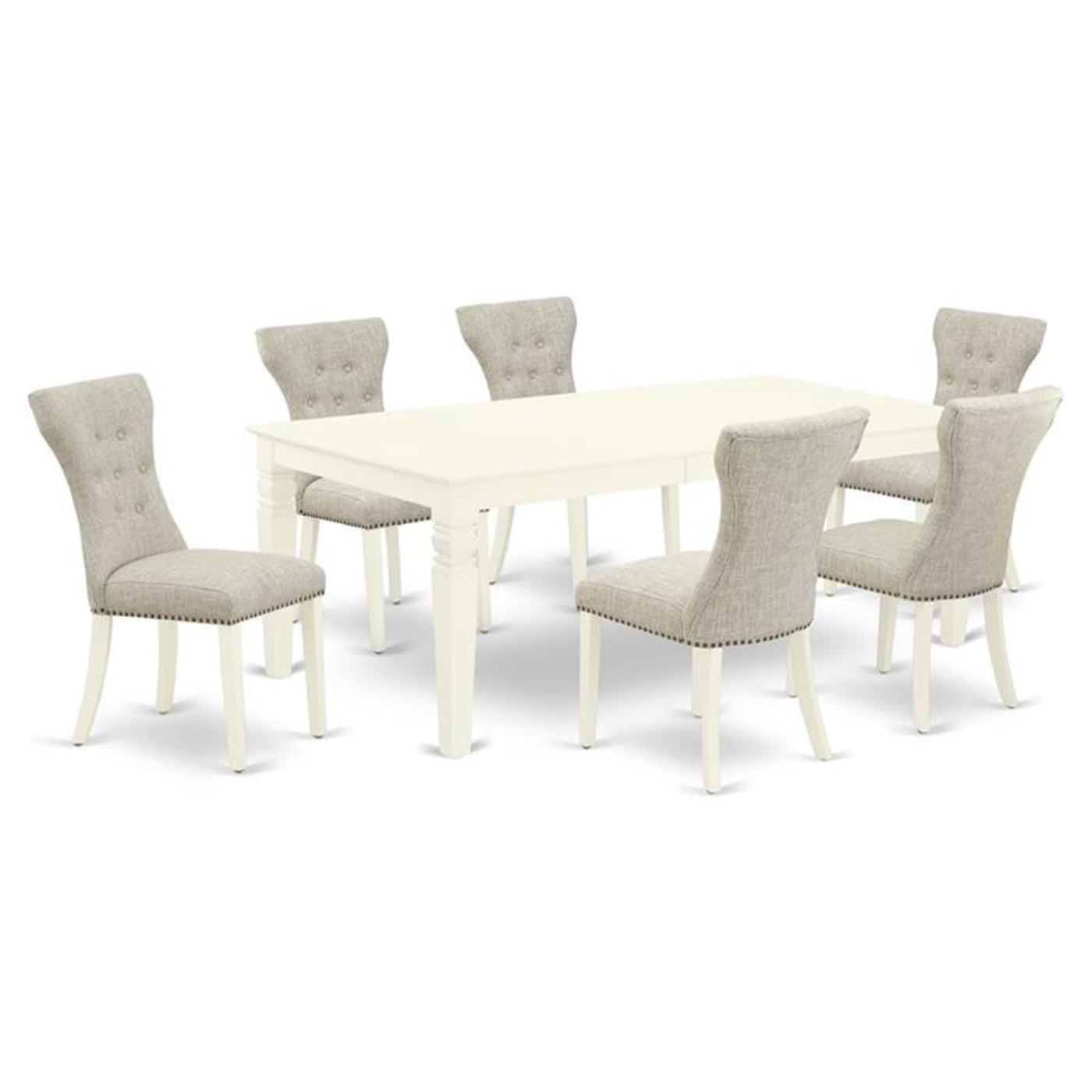 Casafoyer Lgga7-Lwh-35 Logan 7 Piece Dining Set Consist Of A Rectangle Kitchen Table With Leaf And 6 Doeskin Fabric Upholstered Chairs, 42X84 Inch, Linen White
