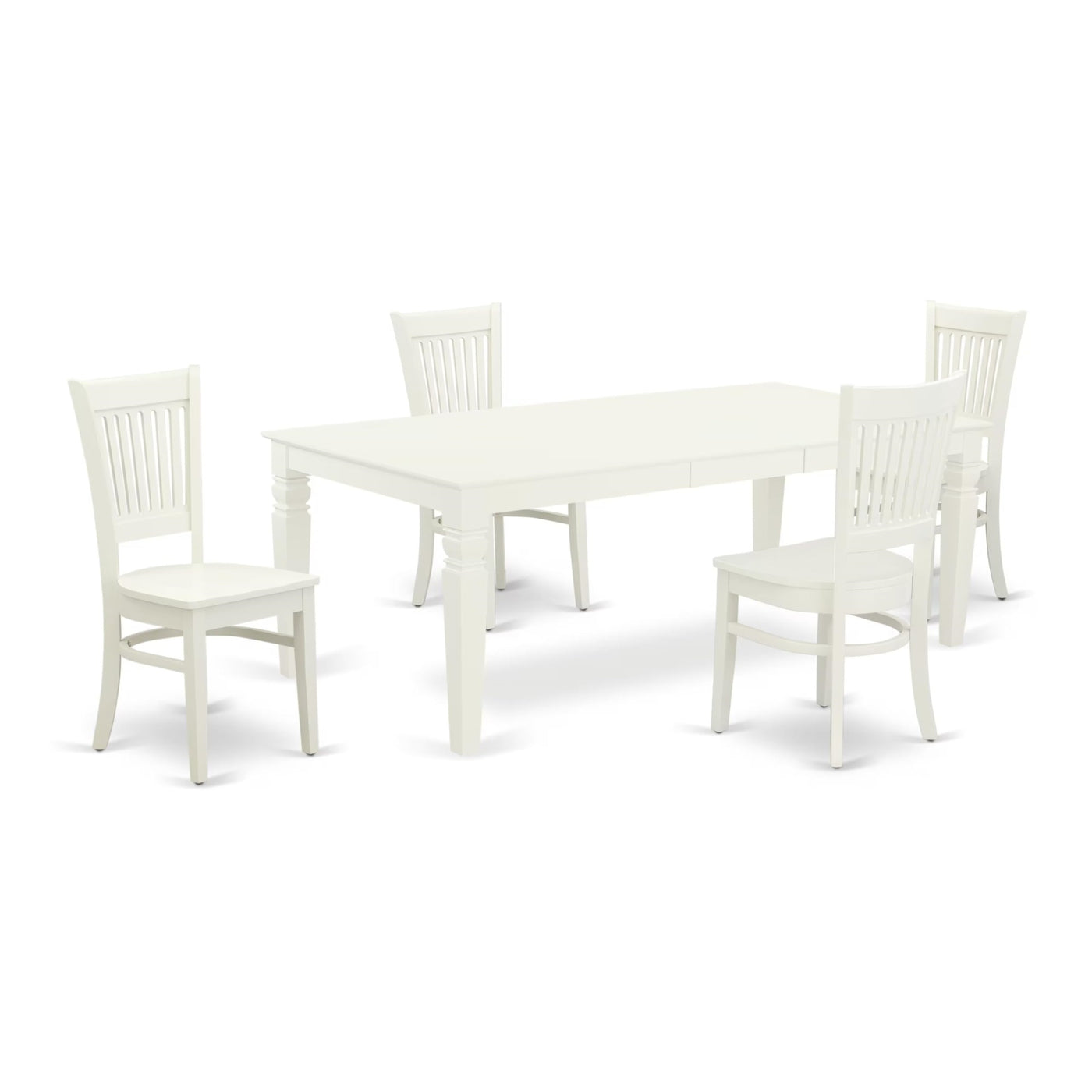Casafoyer Lgva5-Lwh-W Logan 5 Piece Set Includes A Rectangle Dining Room Table With Leaf And 4 Kitchen Chairs, 42X84 Inch, Linen White