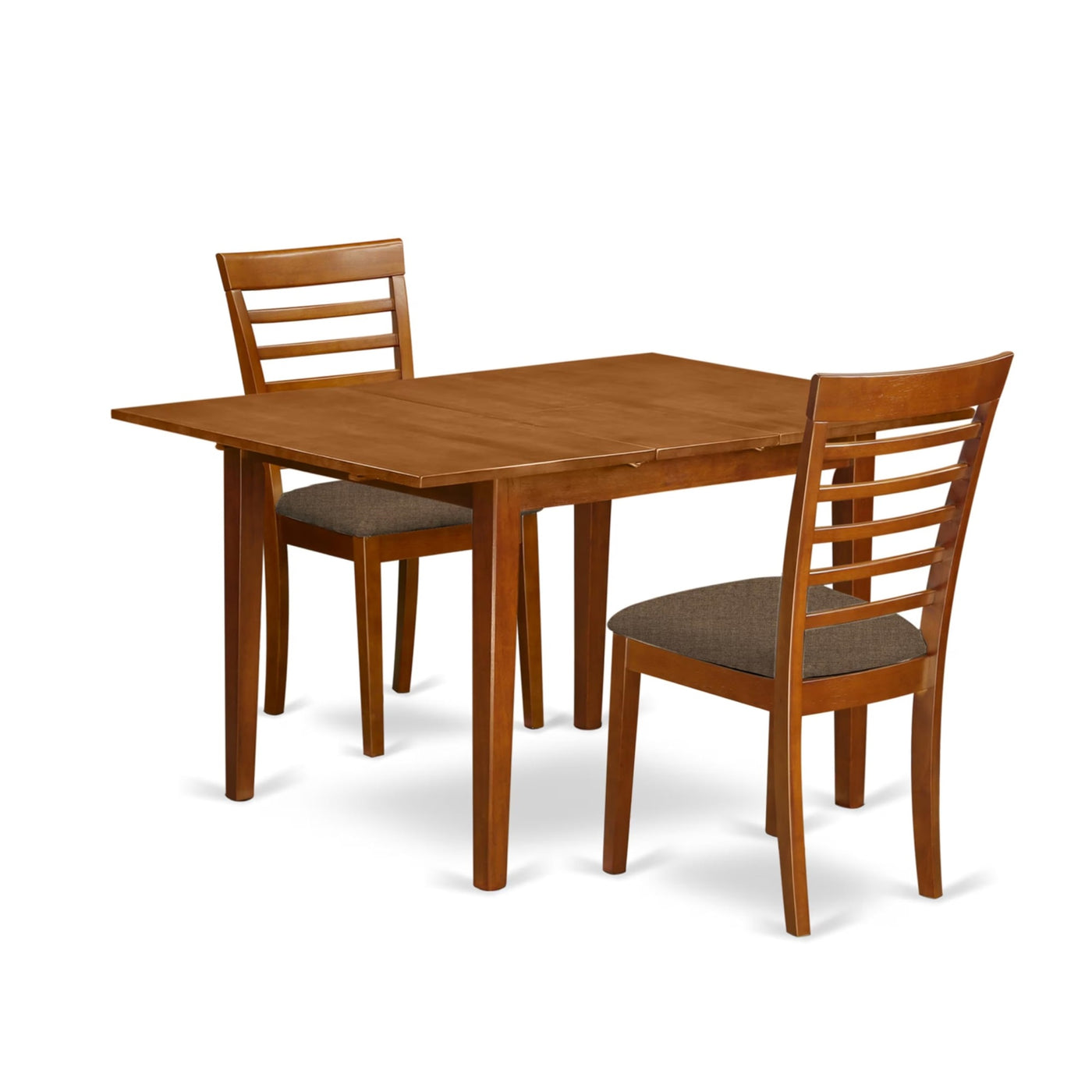 Casafoyer Mila3-Sbr-C 3 Piece Dining Room Table Set Contains A Rectangle Kitchen Table With Leaf And 2 Linen Fabric Upholstered Chairs, 36X54 Inch, Saddle Brown