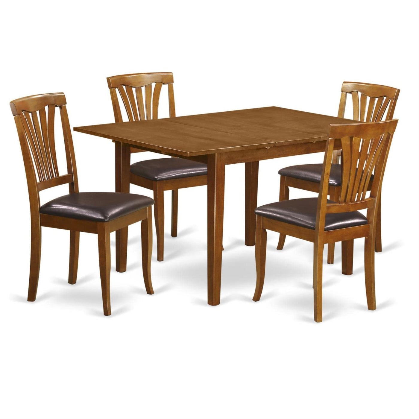Casafoyer Mlav5-Sbr-Lc Milan 5 Piece Kitchen Set Includes A Rectangle Dining Room Table With Leaf And 4 Faux Leather Upholstered Chairs, 36X54 Inch