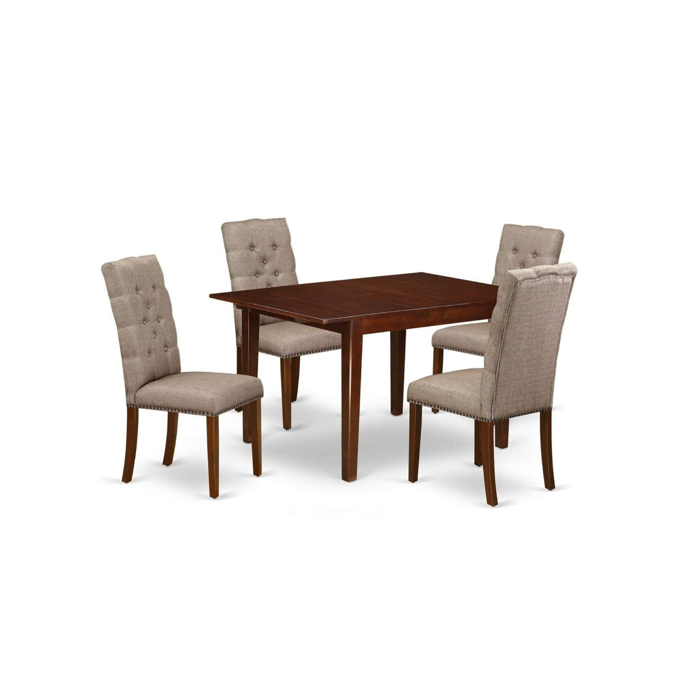 Casafoyer Mlel5-Mah-16 Milan 5 Piece Modern Dining Set Includes A Rectangle Wooden Table With Leaf And 4 Dark Khaki Linen Fabric Parson Chairs, 36X54 Inch, Mahogany