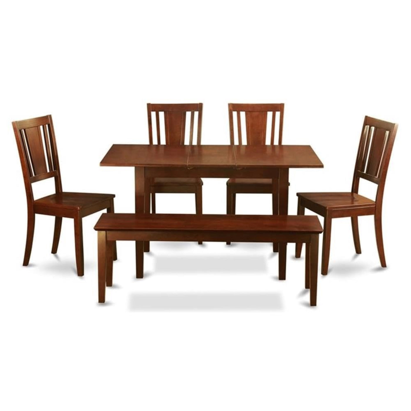Nodu6C-Mah-W Nodu6C-Mah-W 6 Pc Small Kitchen Nook Dining Set -Table With Leaf And 4 Chairs Plus Bench, Smalll And Sleek, This Dining Room Table Set Can Be A Fantastic Match To Virtually Any Interior Design. The Actual Beauty Is This Mahogany Dinette Table Set Consists Of A Hidden Expandable Leaf To Increase The Size By Another 12 For Sudden Company. Don'T Worry About Placing In The Leaf, Or Taking It Out, As This Tiny Leaf Takes Care Of It For You With Self Storage Application. Rectangular Shape Gives You Additional Flexibility In Room Design And Use. Quick 12 In Expansion Leaf Storage Saves You Room, Time And Effort When Required. The Dining Chairs Features A Minimal Curve For Design And Strength. Blending Collectively Design And Comfort, This Is A Wonderful Table Set For Any House.