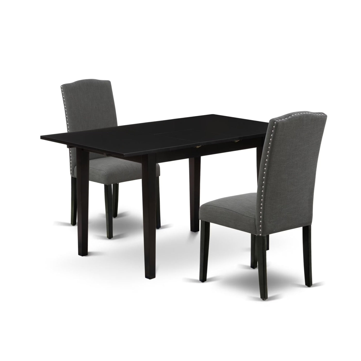 Casafoyer Noen3-Blk-20 3 Piece Kitchen Table Set Contains A Rectangle Dining Room Table With Leaf And 2 Dark Gotham Linen Fabric Parsons Chairs, 32X54 Inch, Black