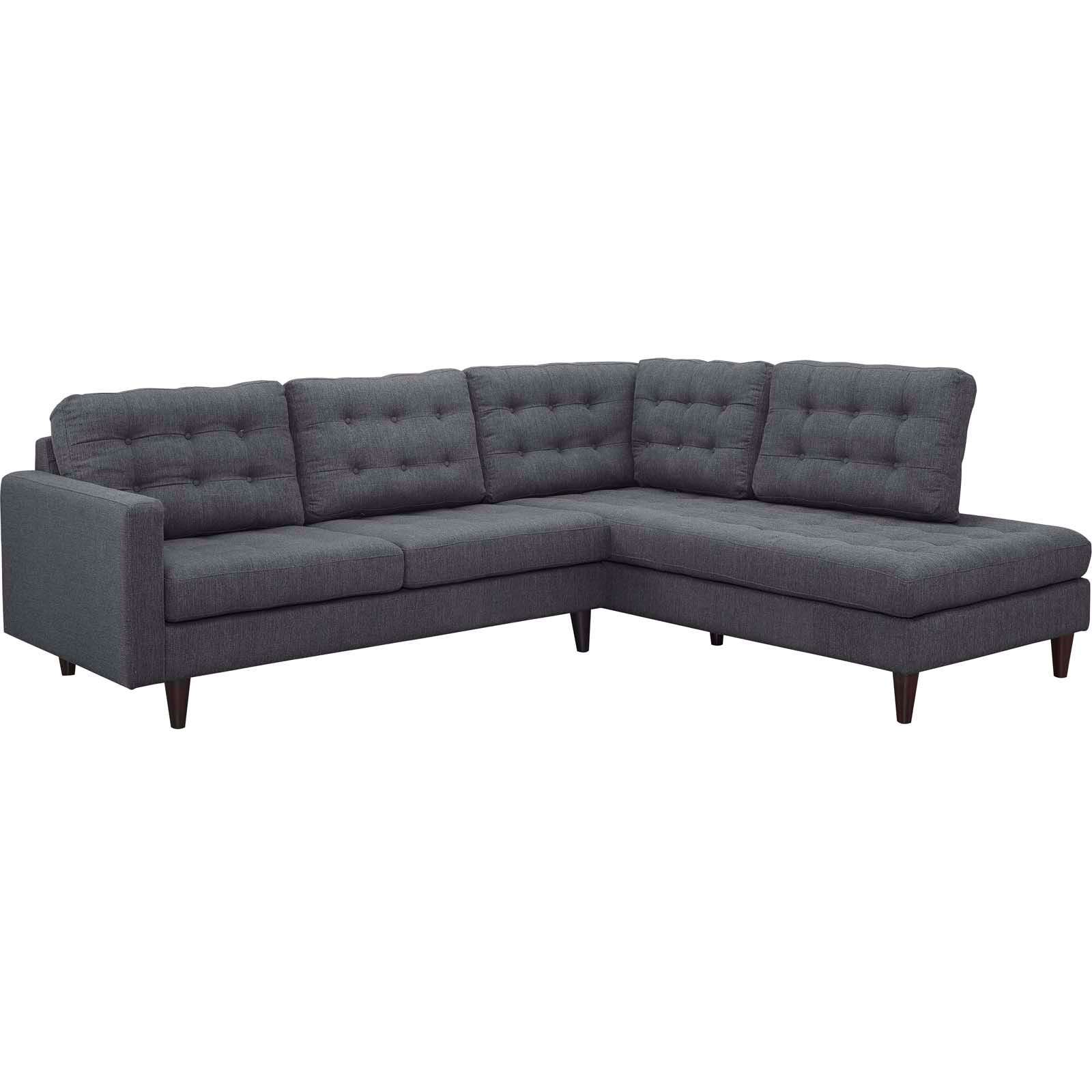 Empress 2 Piece Upholstered Fabric Right Facing Bumper Sectional - Gray
