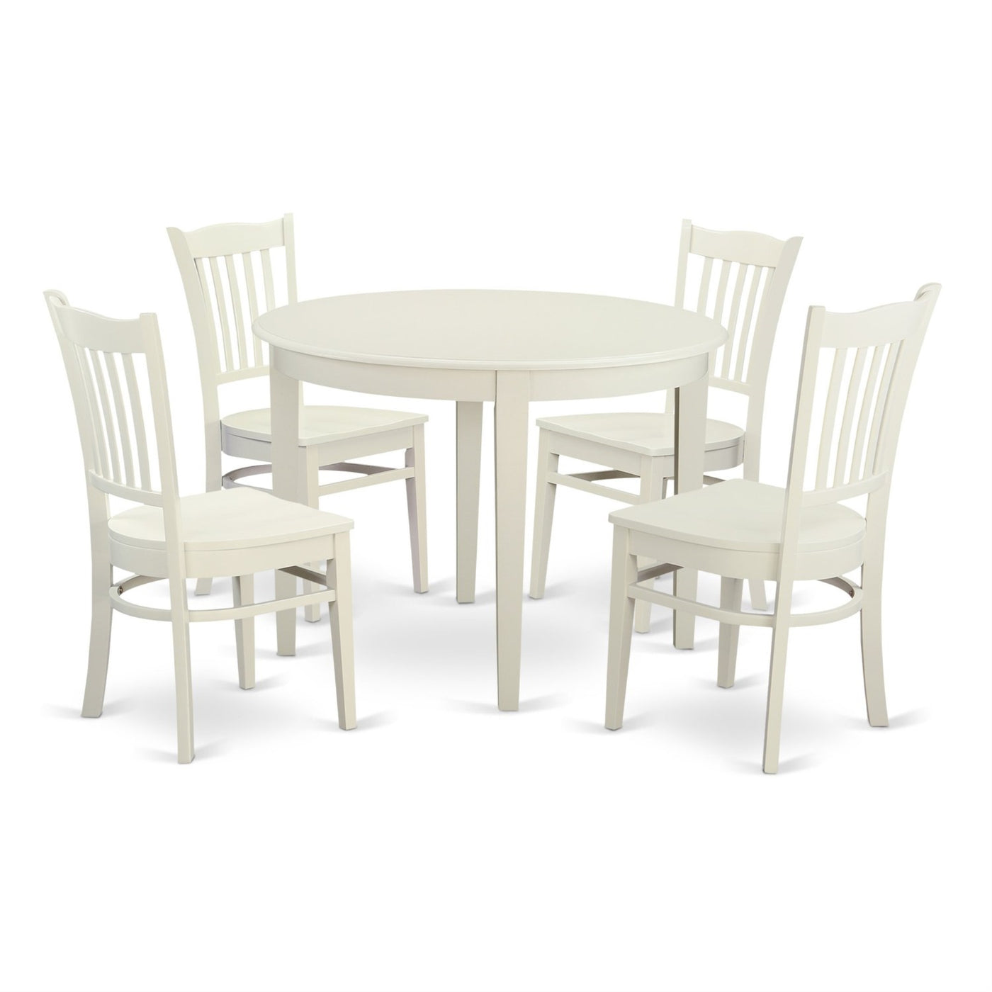 Ergode Bogr5-Whi-W, 5 Piece Round Dining Table Set, Wooden Kitchen Furniture, Small Table & 4 Chairs, Asian Real Wood, Easy To Clean, Linen White, 42X42 Inch