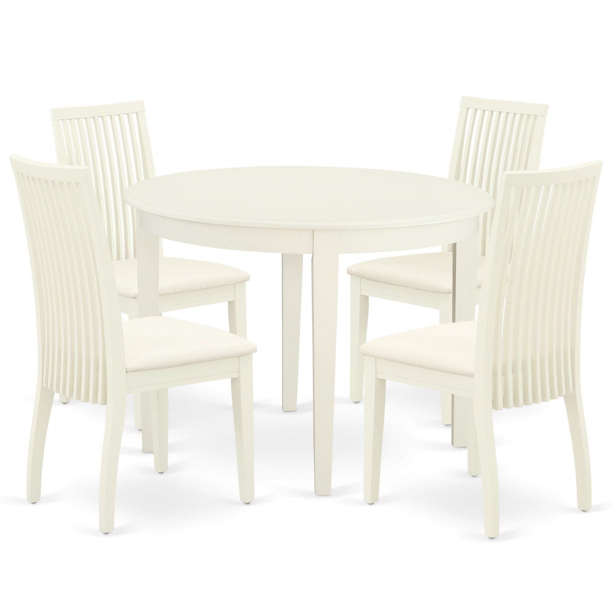 Ergode Boip5-Whi-C, 5-Piece Dining Table Set, Linen Fabric Chairs, White Finish, 42X42 Inch
