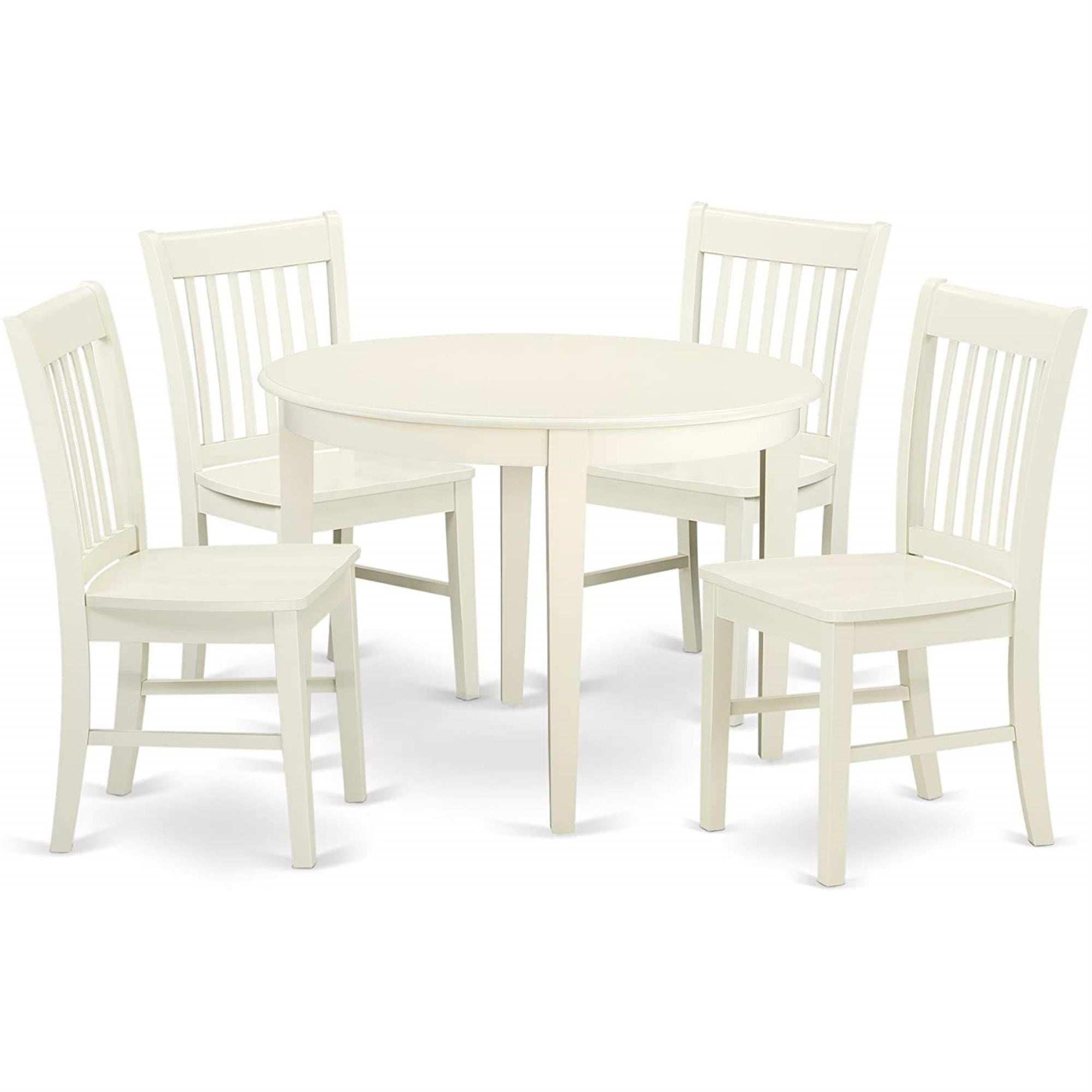 Ergode Bono5-Lwh-W, 5 Piece Round Dining Table Set, Wooden Chairs, Modern Design, Asian Hardwood, Easy Assembly, 42X42 Inch