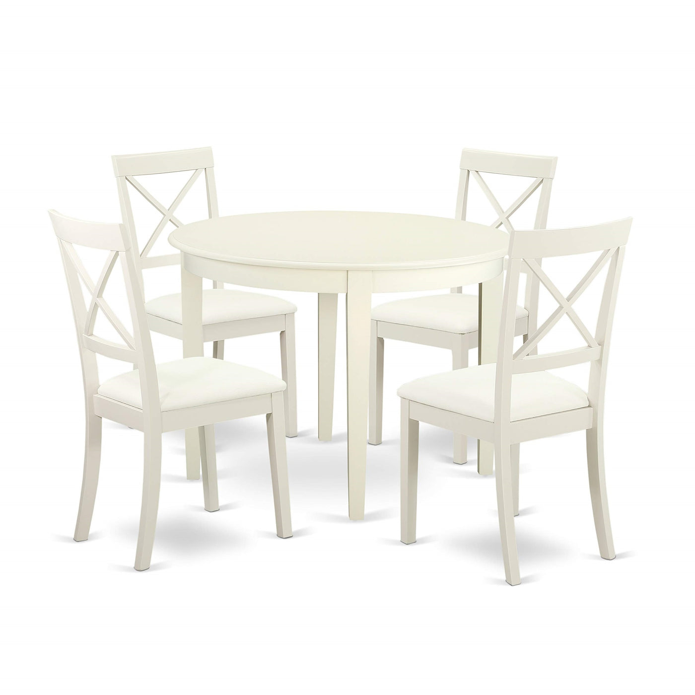 Ergode Bost5-Lwh-Lc, 5-Piece Dining Table Set, Round Table & 4 Elegant Chairs, Pu Leather Seat, Wooden X-Back, Asian Wood, Easy Assembly, 42X42 Inch