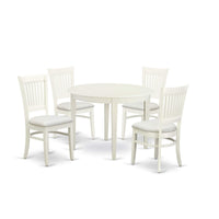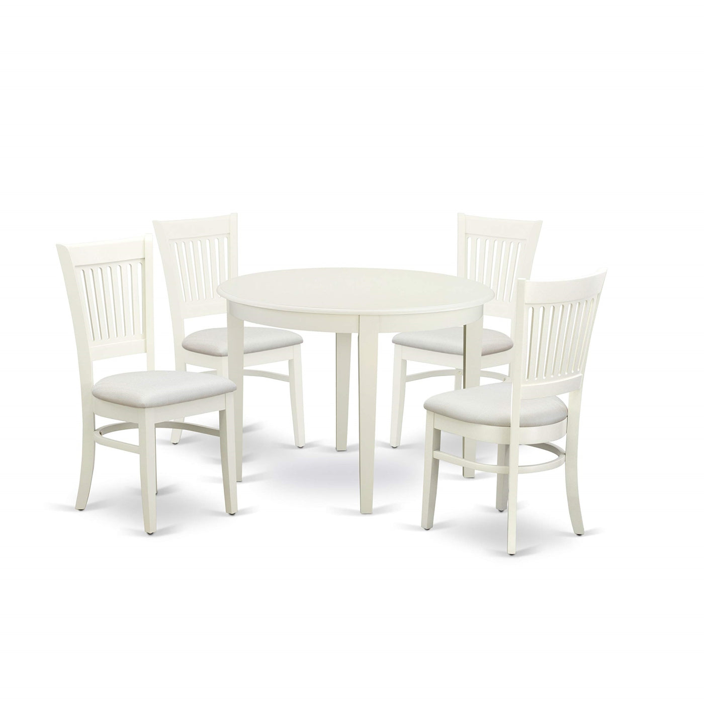 Ergode Bova5-Lwh-C, 5-Piece Kitchen Table Set, Linen White Finish, Round Top, 4 Dining Chairs, Rubberwood Frame, 42X42 Inch
